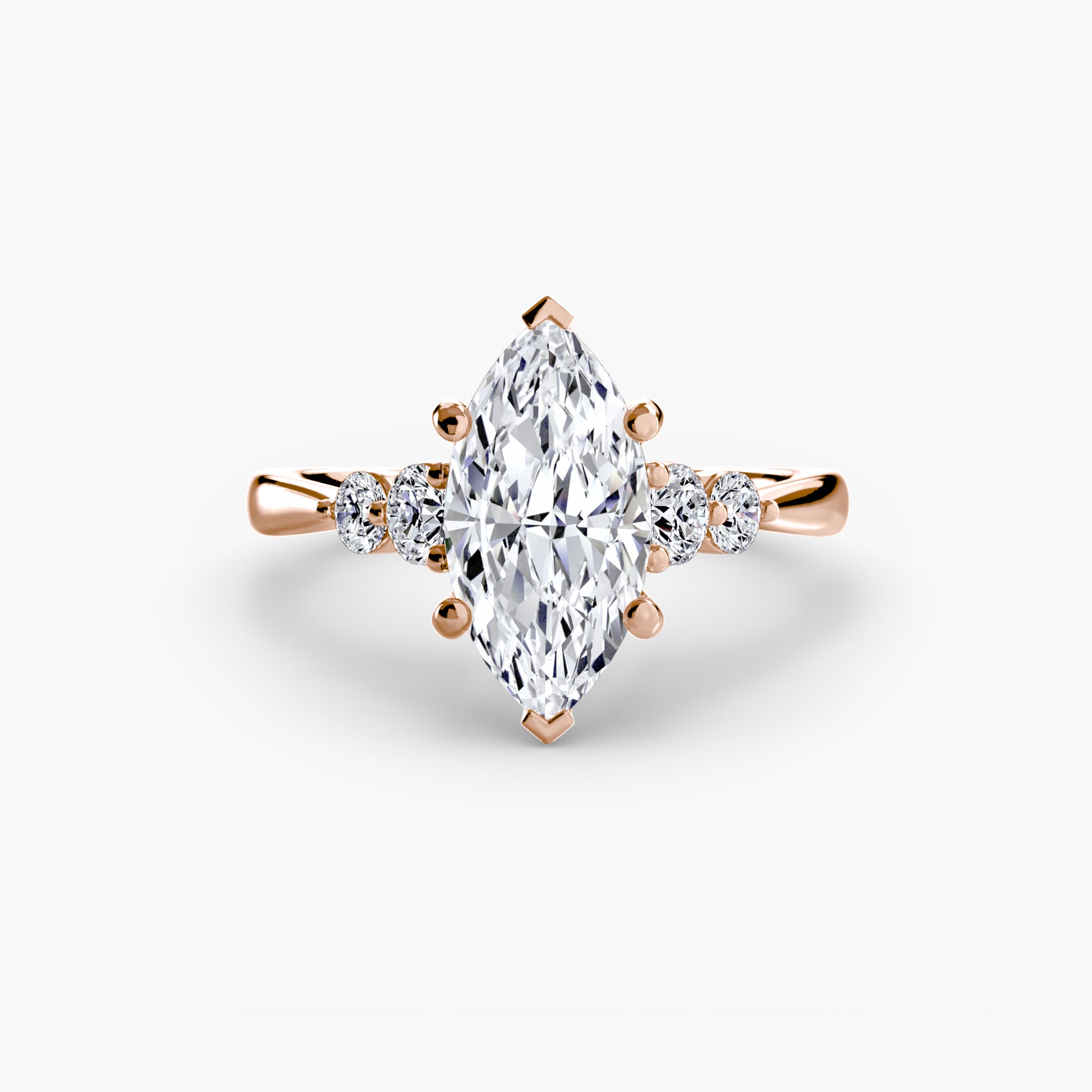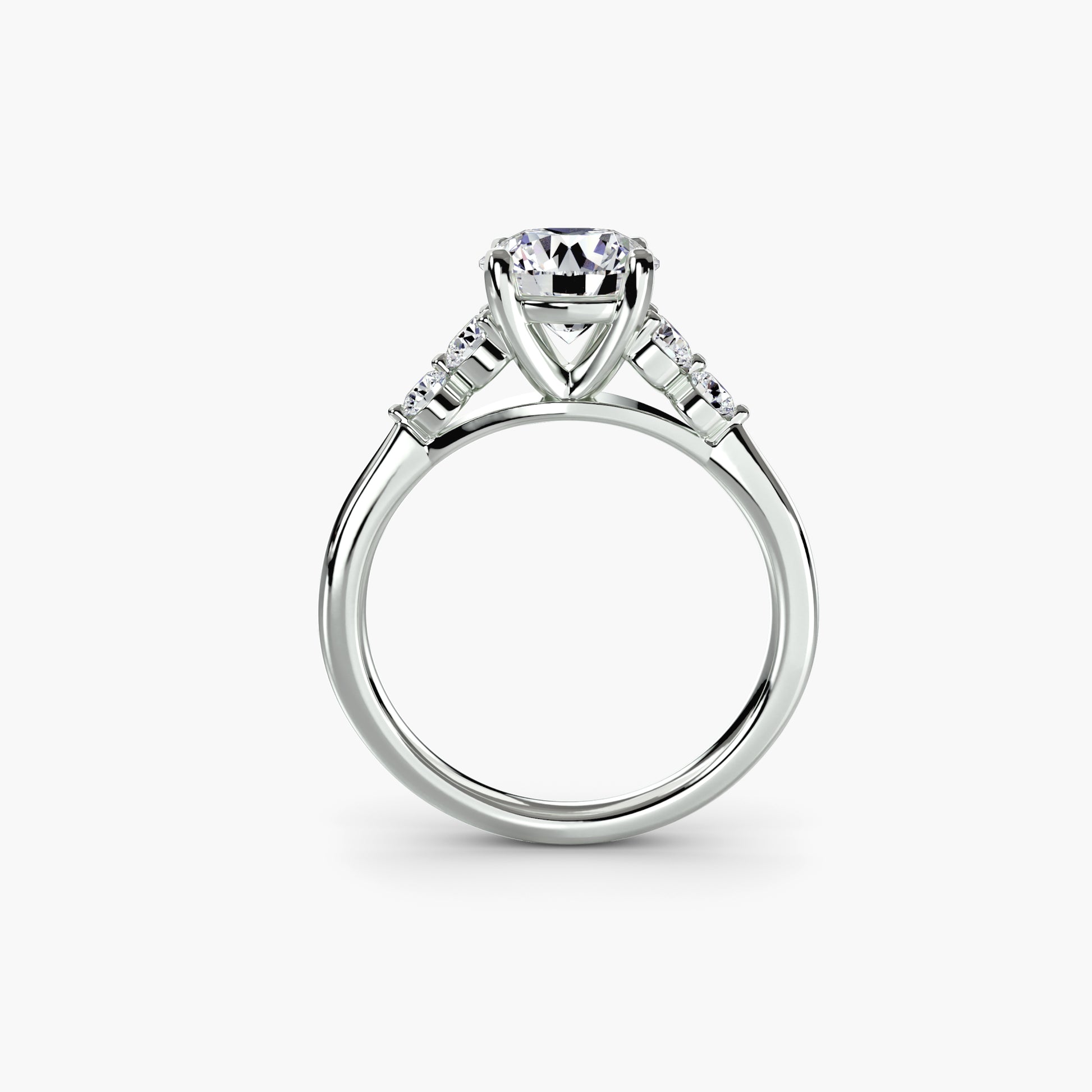 • Center Stone Options: Round, Princess, Emerald, Pear, Oval, Heart, Marquise, Cushion, or Square Emerald (Asscher)