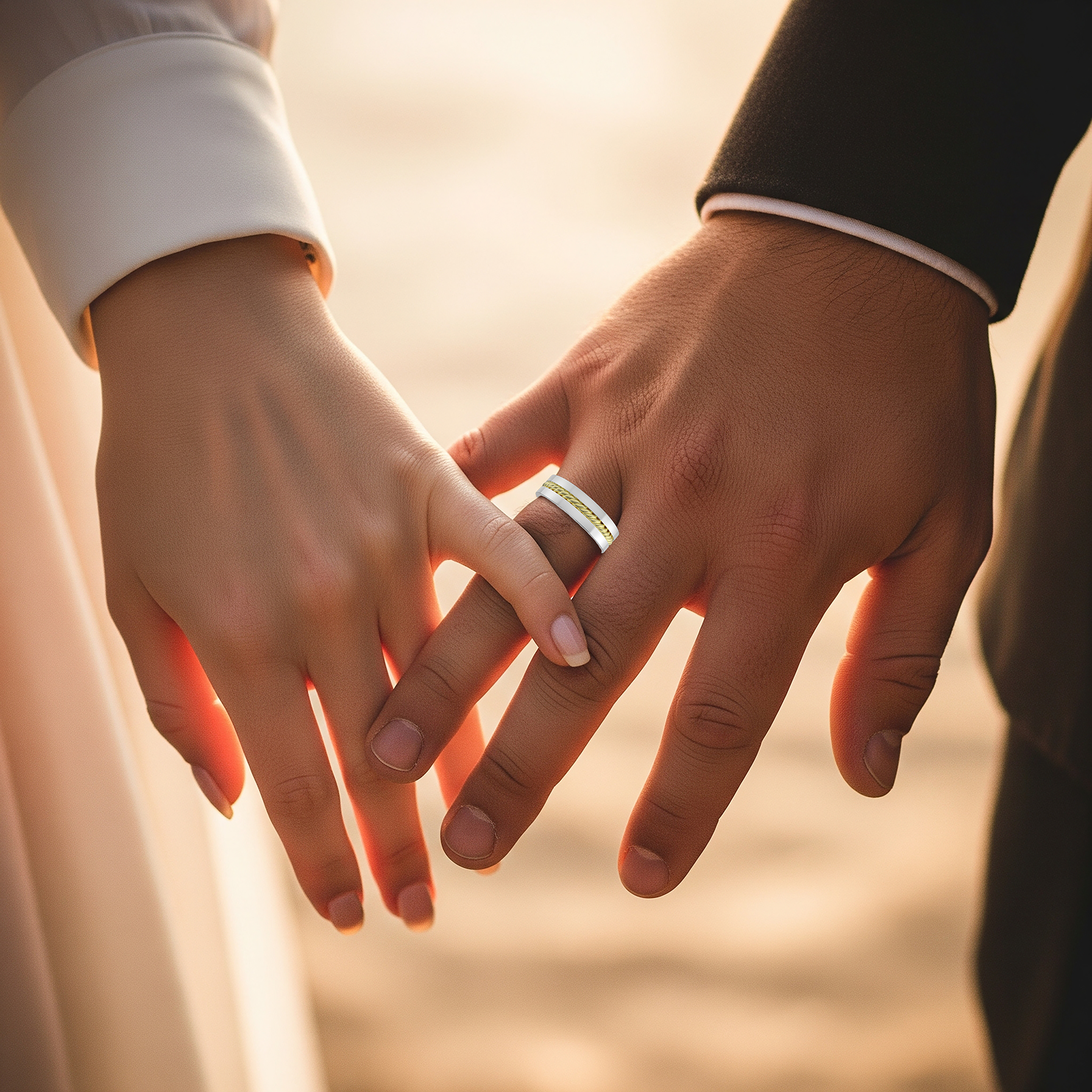 Embrace the enduring symbol of your commitment with this beautifully crafted wedding band. The central twisted rope design intricately represents the intertwining of two lives, forming a strong and lasting bond. This elegant band is available in your choice of 14kt or 18kt gold, offered in classic white gold, warm yellow gold, or romantic rose gold. To further personalize this meaningful piece, you have the option to select a rope detail that seamlessly blends with the band's metal or choose a contrasting color, creating a unique visual representation of your distinct connection and shared journey. This thoughtful customization allows you to create a wedding band that truly reflects your individual style and the unique tapestry of your love story.